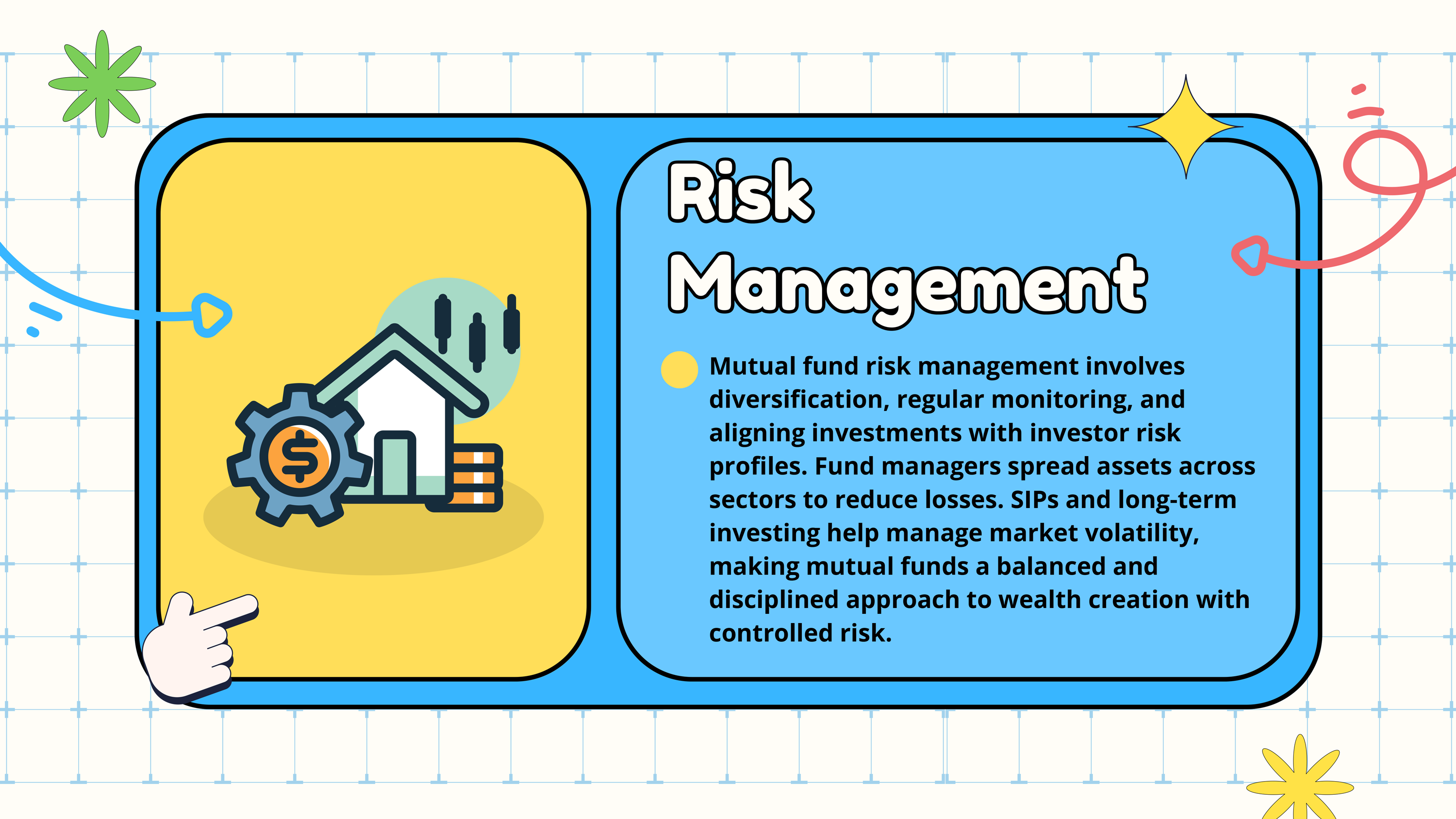 Diversifying across sectors and asset types, mutual funds minimize losses and align with your risk profile—ensuring disciplined and safer investing.